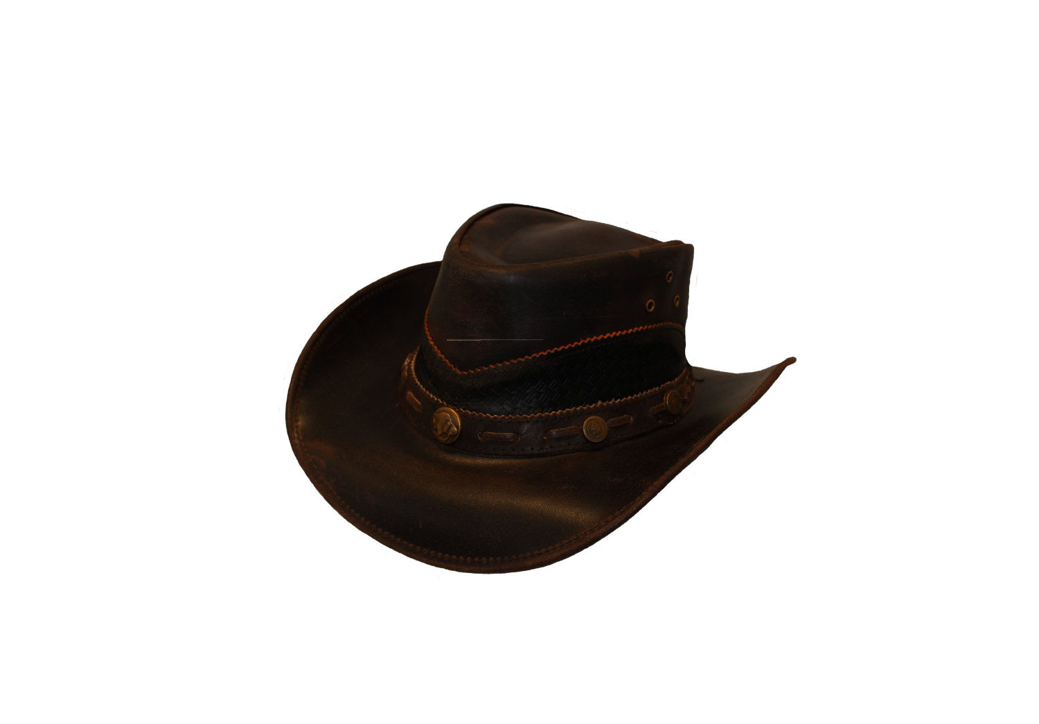 Das Highlight des Lyndon ist zweifellos das aufwendig gestaltete Hutband: Verziert mit eleganten Conchos und ergänzt durch ein gestepptes Muster auf der Krone, verleiht es dem Hut einen unverwechselbaren, edlen Look. Die seitlichen Ösen ermöglichen die Befestigung eines Kinnriemens, sodass der Hut auch bei windigen Abenteuern sicher sitzt.